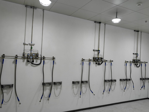 1.氣瓶間內壓差調節器控制面板與試驗棚內的氣路終端設備內選則SS316LBA管來接,管路內從表面晶亮度為Ra<0.4umBA級管路。